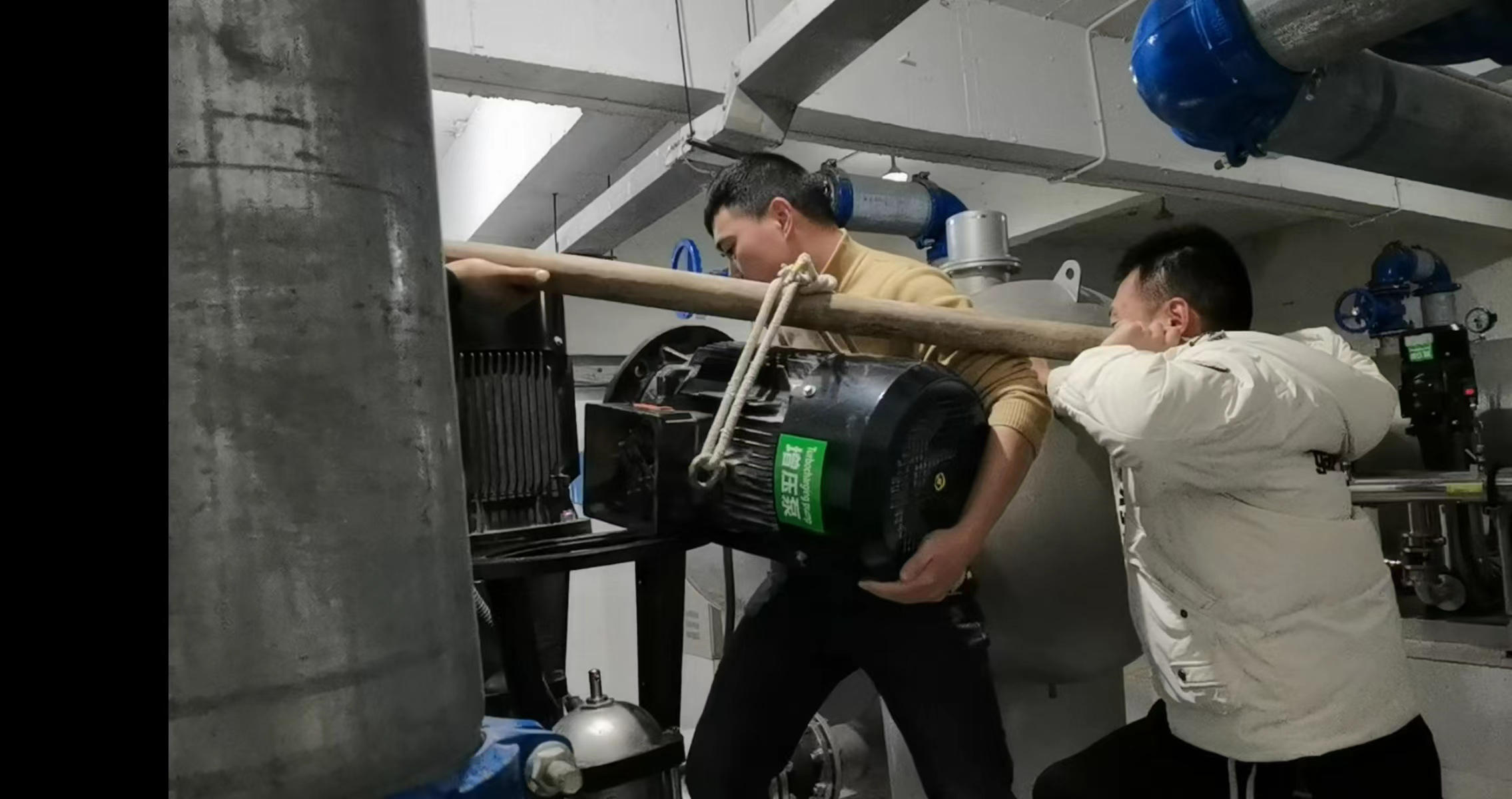 豪鵬公司加大了二次供水泵房的巡檢力度,全力保障各小區(qū)的用水安全。近日,在巡檢過程中巡檢人員劉靈漾發(fā)現(xiàn)春天公園城小區(qū)的水泵運(yùn)行出現(xiàn)聲音異常,存在安全隱患,維修人員夏旭陽及時(shí)趕赴春天公園城小區(qū)泵房。經(jīng)多番細(xì)致檢查,發(fā)現(xiàn)異響聲音原因來源于泵體內(nèi)部的葉輪磨損導(dǎo)致,維修人員隨即對泵體內(nèi)部葉輪進(jìn)行更換。夏旭陽、劉靈漾將重達(dá)300斤的增壓泵抬起、歸位、試機(jī),異響消除 ,安全隱患得以解決。