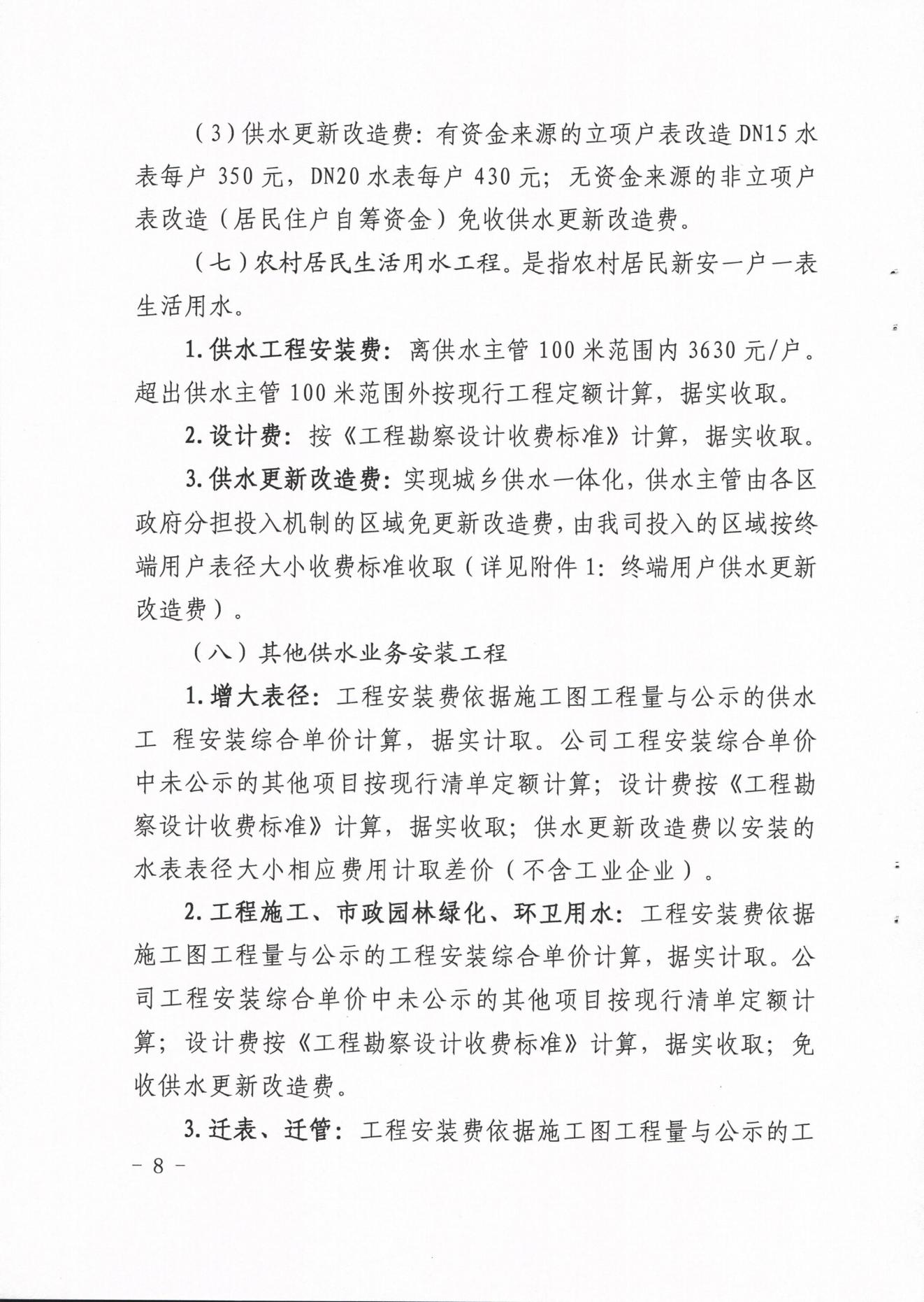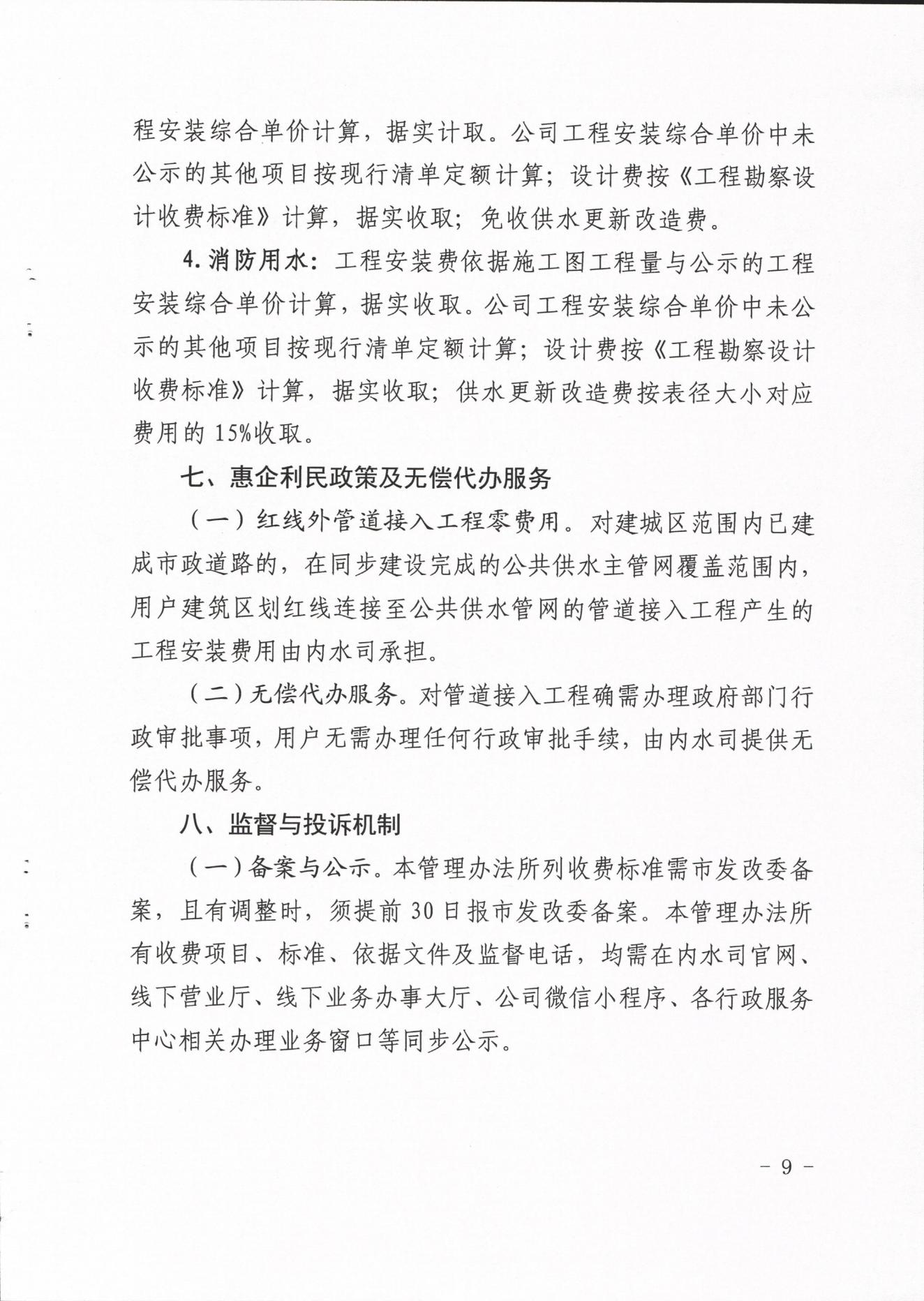 內(nèi)江市水務(wù)有限責任公司供水工程安裝及供水管道更新改造收費管理辦法(試行)