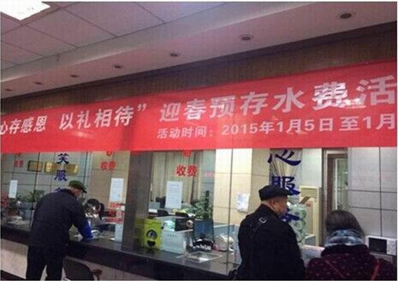 為感謝廣大用戶對(duì)城市供排水事業(yè)的長(zhǎng)期支持和幫助,我司在2015年1月5日至1月24日期間開(kāi)展“心存感恩、以禮相待”迎春預(yù)存水費(fèi)活動(dòng)。本次活動(dòng)由客戶服務(wù)部牽頭,在白馬辦事處、物資供應(yīng)部和機(jī)關(guān)各部門的支持配合下,圓滿結(jié)束。
