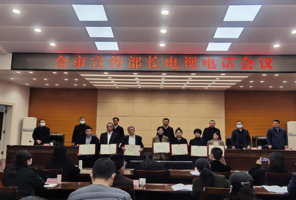 3月3日上午,全市宣傳部長會議在市政府4樓4會議室召開。會上,表彰了全市宣傳思想工作先進單位和先進個人,我司六支部書記、二水廠經理陳剛作為先進個人代表上臺接受頒獎。