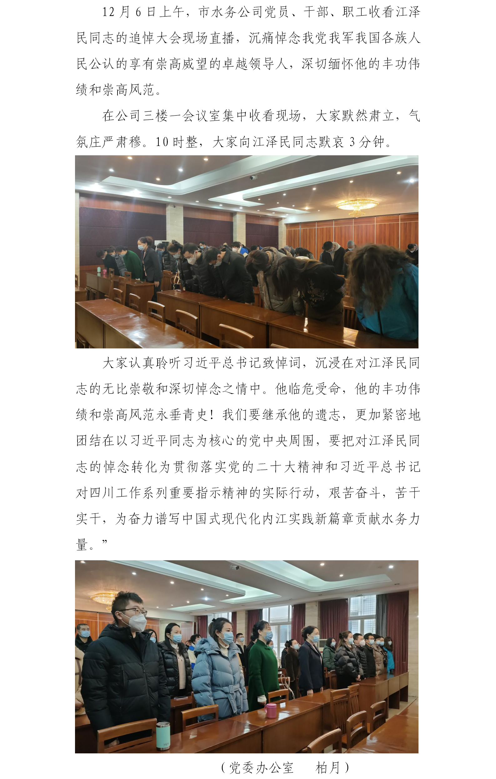市水務公司黨員干部群眾收看江澤民同志追悼大會現(xiàn)場直播