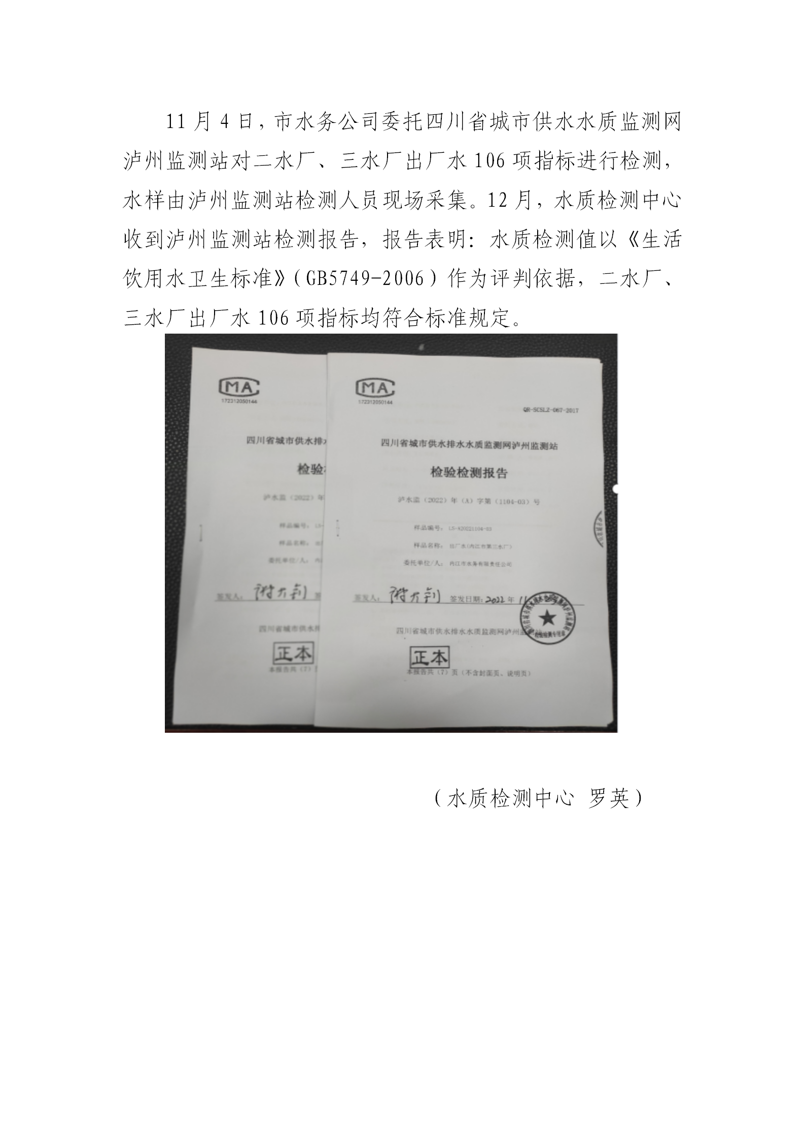 二水廠、三水廠出廠水106項(xiàng)指標(biāo) 符合國(guó)家標(biāo)準(zhǔn)要求