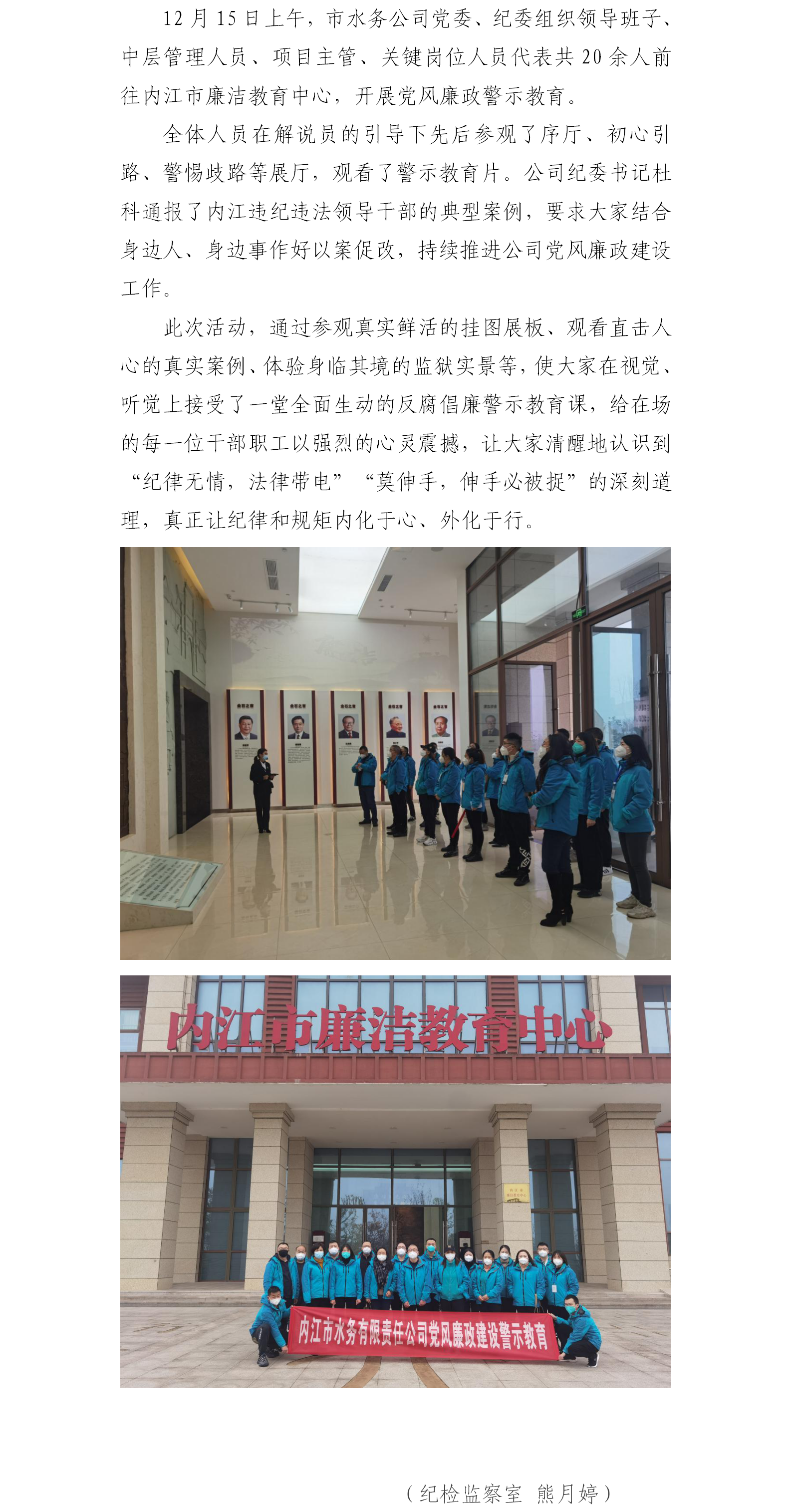 公司組織干部職工到內(nèi)江市廉潔教育中心開展警示教育