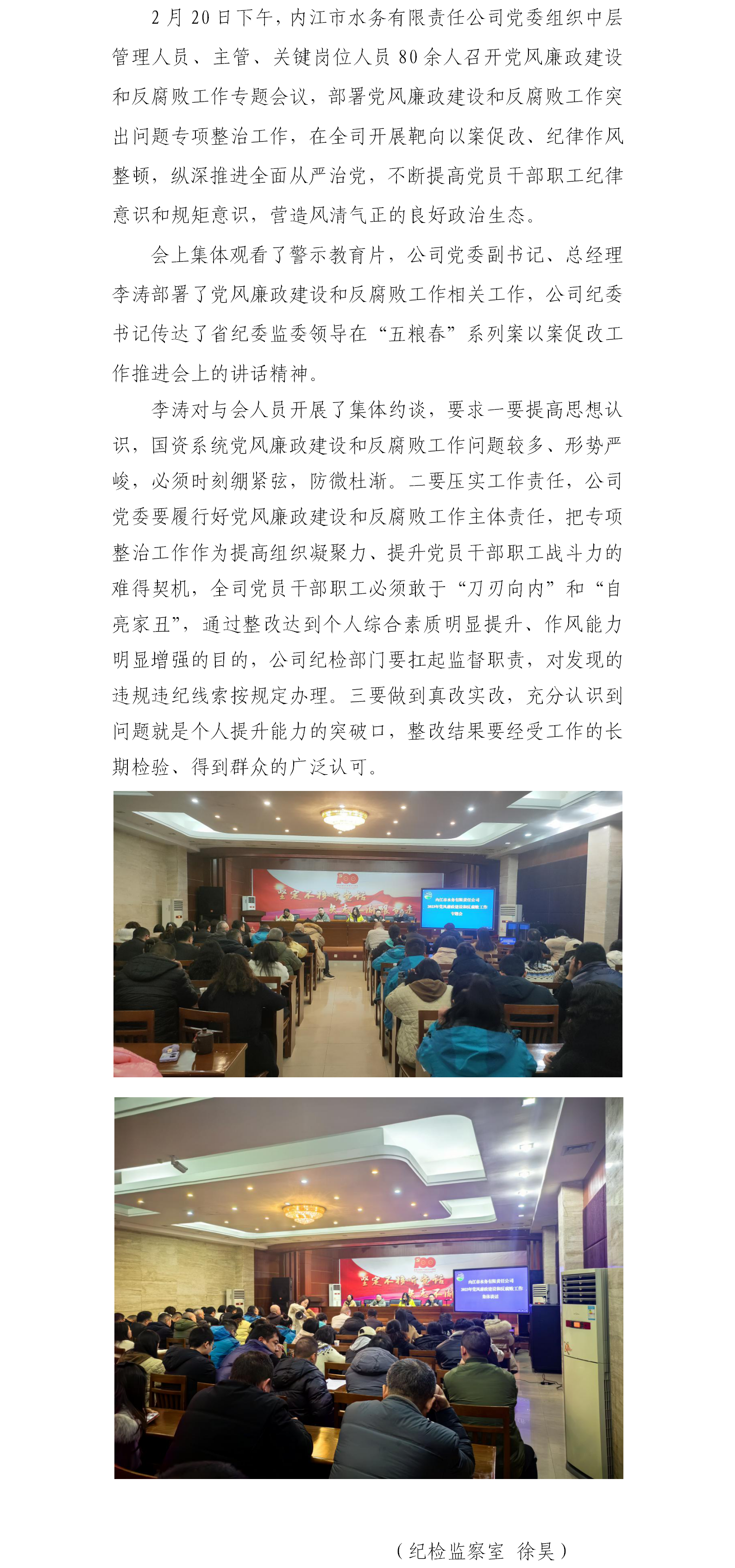 中共內(nèi)江市水務(wù)有限責(zé)任公司委員會(huì)召開黨風(fēng)廉政建設(shè)和反腐敗工作專題會(huì)議