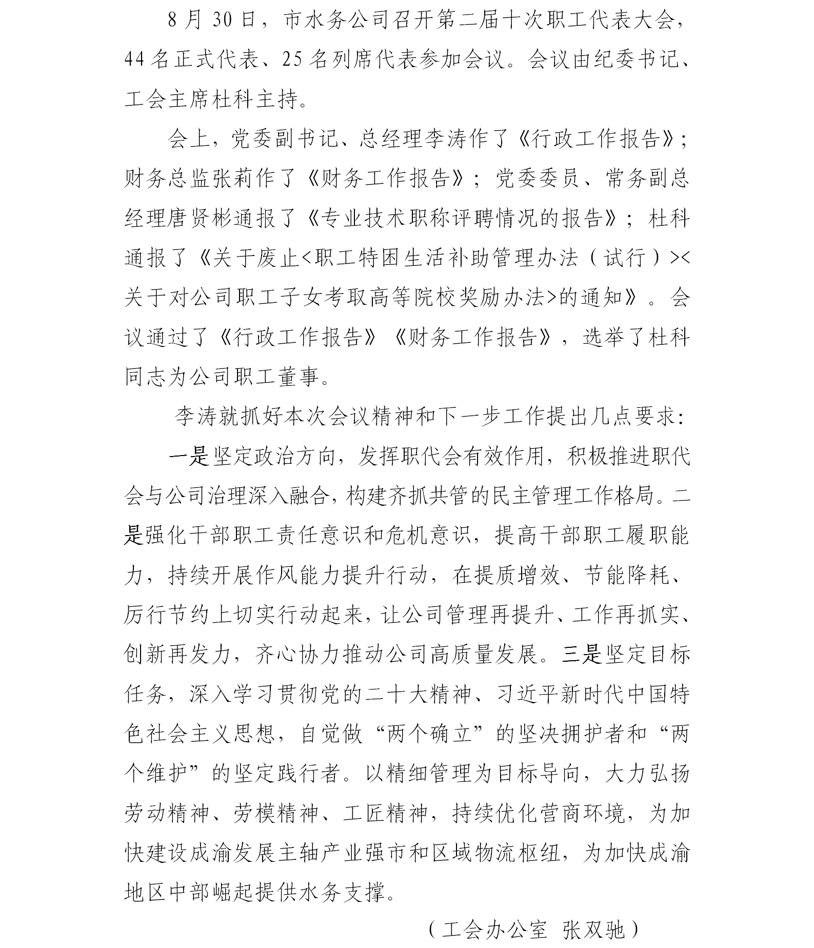 市水務(wù)公司召開第二屆十次職工代表大會(huì)