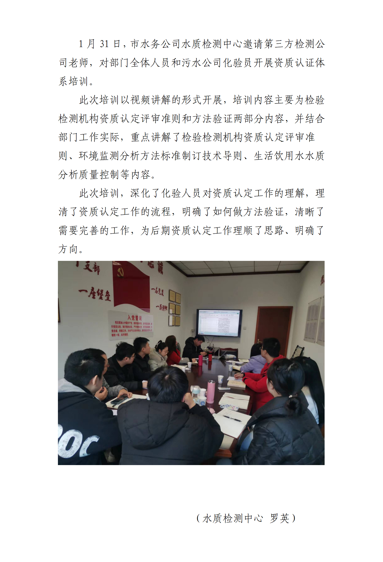 水質(zhì)檢測中心參加資質(zhì)認(rèn)證體系培訓(xùn)