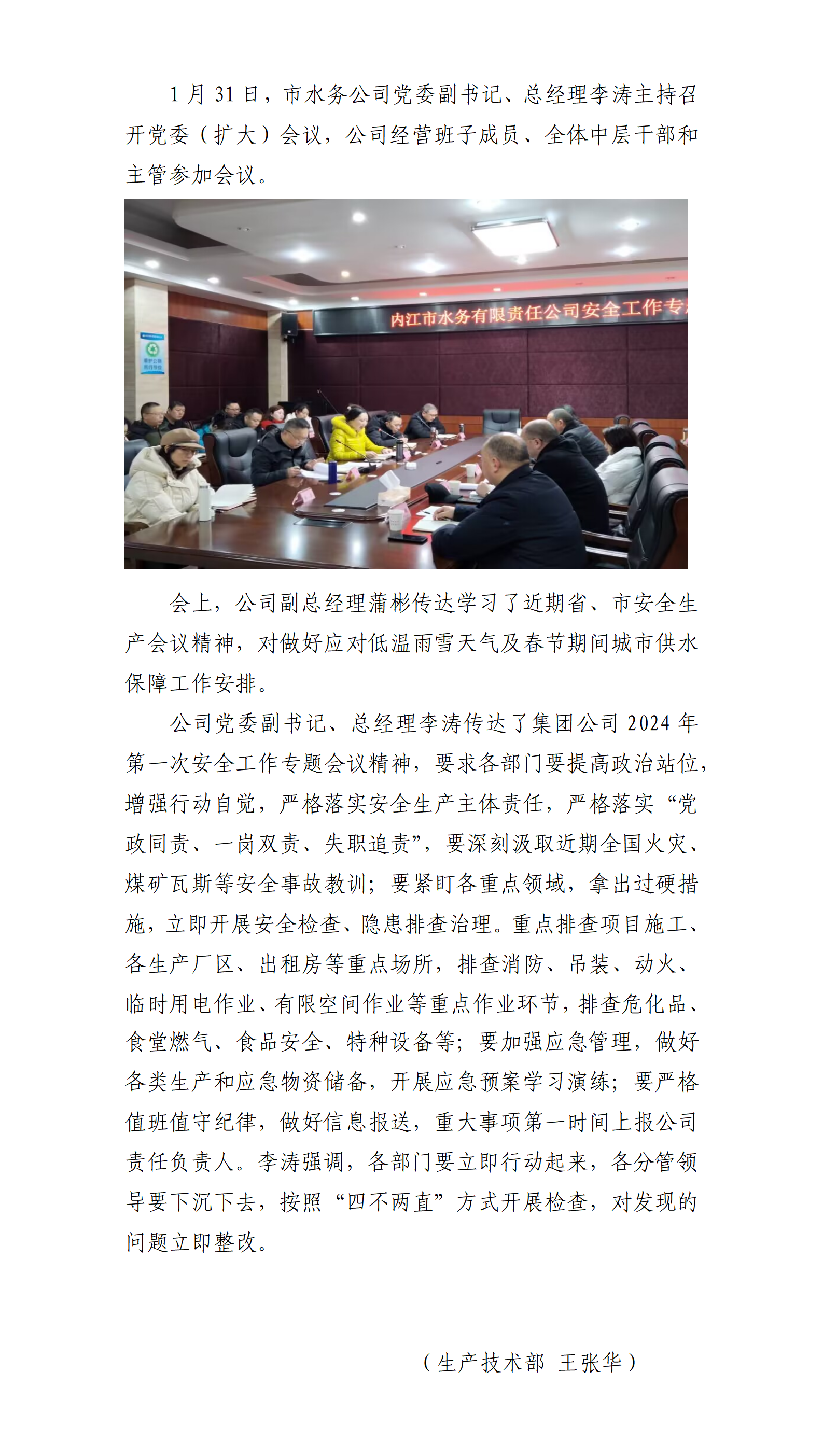 水務公司召開安全生產(chǎn)專題會