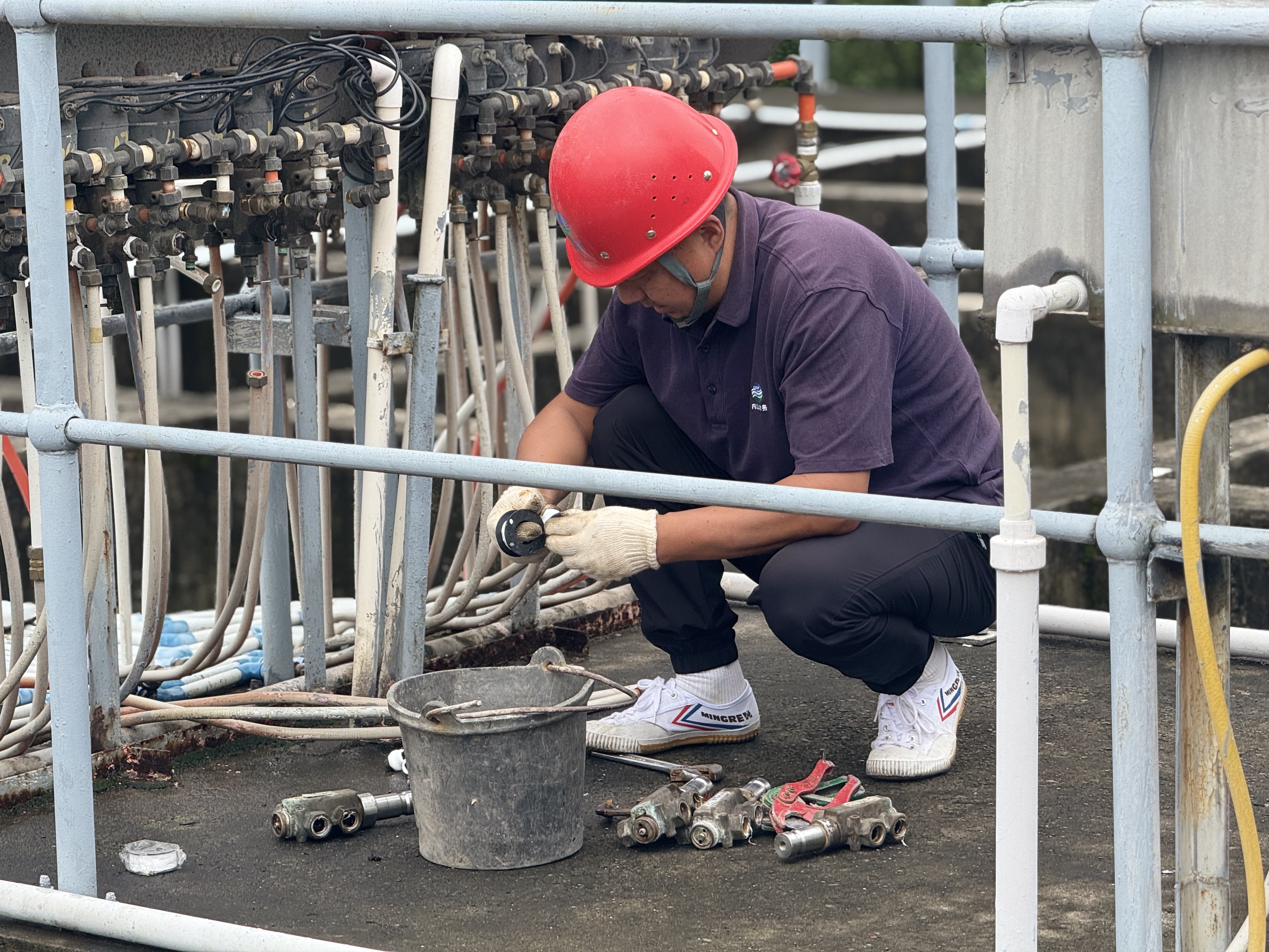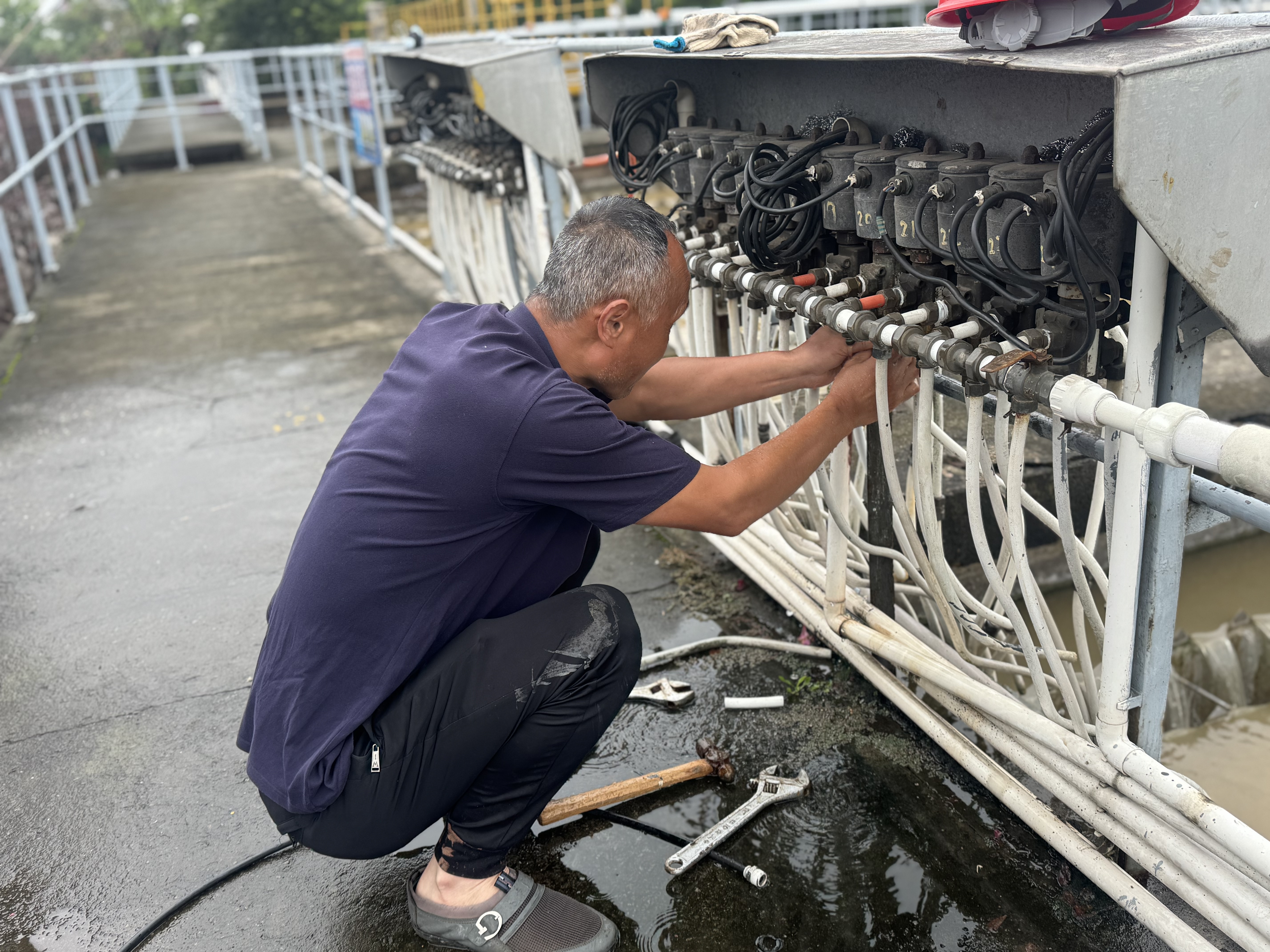 供水安全的責(zé)任重于泰山。7月8日清晨,剛剛完成三水廠二氧化氯投加設(shè)備維修的供水分公司維修組,聞令火速轉(zhuǎn)戰(zhàn)二水廠,投入到緊張的“戰(zhàn)斗”中:迅速展開拆解、診斷、更換、調(diào)試工作。經(jīng)驗(yàn)豐富的維修師傅們動(dòng)作嫻熟而精準(zhǔn),他們以專業(yè)的技術(shù)和頑強(qiáng)的作風(fēng),與時(shí)間賽跑,與故障較量,高效疏通了排泥系統(tǒng)的“堵點(diǎn)”,確保流進(jìn)千家萬(wàn)戶的每一滴自來(lái)水,都經(jīng)得起最嚴(yán)格的檢驗(yàn)。