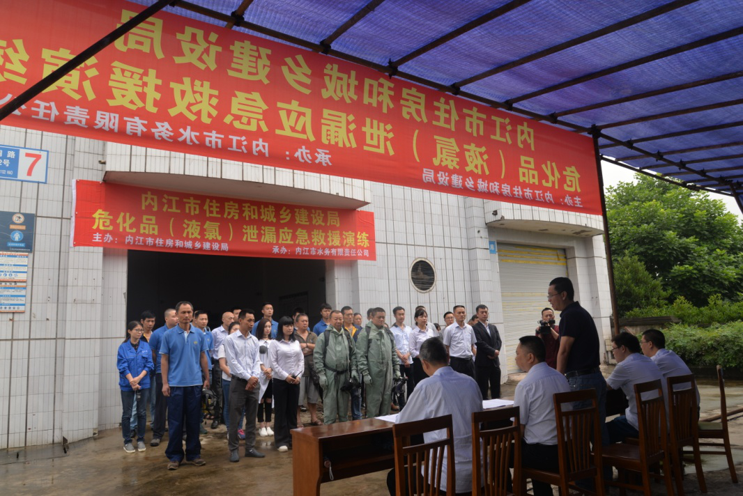 2017年6月16日上午,為做好?;钒踩芾砉ぷ鳎0踩┧?/span>,公司在二水廠成功進(jìn)行液氯泄漏應(yīng)急救援演練。本次演練,由市住建局主辦、公司承辦,公司黨委書記、董事長、總經(jīng)理寧印福任總指揮,總工程師蒲彬任現(xiàn)場總指揮,生產(chǎn)技術(shù)部組織,二水廠具體實(shí)施,共計(jì) 50多人參與演練。