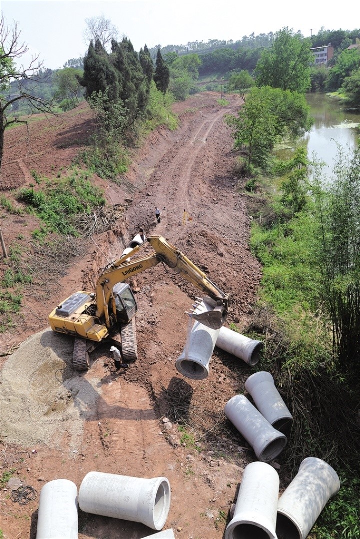 日前,記者來(lái)到位于東興區(qū)新江街道辦事處清流村(沱江、清流河、小青龍河交匯處),看到不少工人在工地上忙碌,有的開(kāi)著挖機(jī)平場(chǎng)地,有的在挖溝槽埋管網(wǎng),有的在用貨車(chē)運(yùn)輸土方,好不熱鬧。