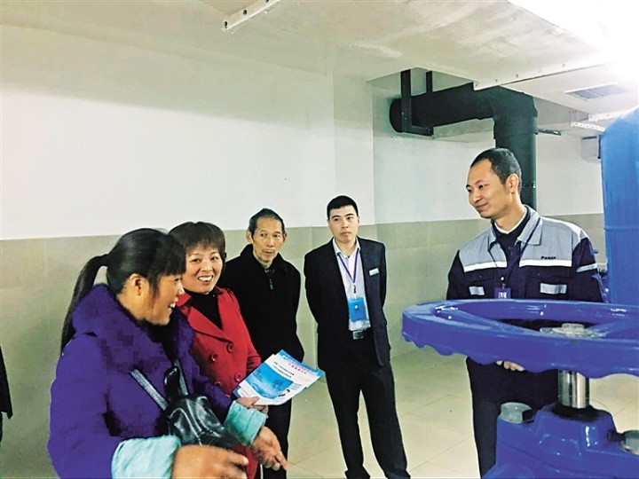 二次供水是什么?對居民用水有什么影響?平時要如何維護?如何繳納二次供水服務費?活動過程中,二次供水公司管理人員在水泵房內詳細向居民介紹二次供水設施的基本構造和原理,并耐心解答用戶提出的問題。