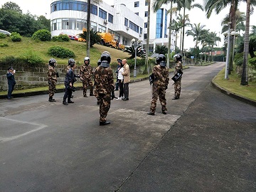 為加強(qiáng)安全生產(chǎn)管理,提高員工反恐怖襲擊事件應(yīng)急處置能力,9月公司二水廠成立反恐怖安全領(lǐng)導(dǎo)小組,加強(qiáng)廠內(nèi)安全檢查,每周至少召開一次安全例會(huì)。10月初成立反恐怖應(yīng)急機(jī)動(dòng)分隊(duì),并編制《二水廠反恐怖防范應(yīng)急演練方案》,明確規(guī)定門衛(wèi)、應(yīng)急機(jī)動(dòng)分隊(duì)等的安全保障任務(wù)。