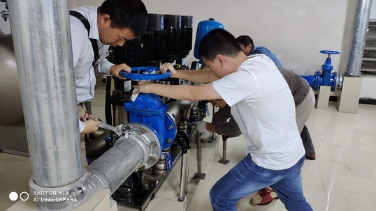 9月17日下午,豪鵬二供公司巡查人員在開展計劃性設(shè)備巡檢時,在公園一號小區(qū)泵房內(nèi)發(fā)現(xiàn)加壓設(shè)備出現(xiàn)重大安全隱患,即高區(qū)加壓設(shè)備出水橫管出現(xiàn)嚴(yán)重傾斜和管道卡箍產(chǎn)生部分位移,造成與管道相連的柔性接頭存在隨時破裂漏水可能。在泵房隔壁就是整個小區(qū)配電室,如泵房內(nèi)管道漏水將直接對配電室造成威脅。面對險情,豪鵬公司立即組織技術(shù)人員進(jìn)行搶修,于當(dāng)晚10:30成功消除安全隱患。此次搶修工作得到豪盛安裝公司的大力支持和配合。